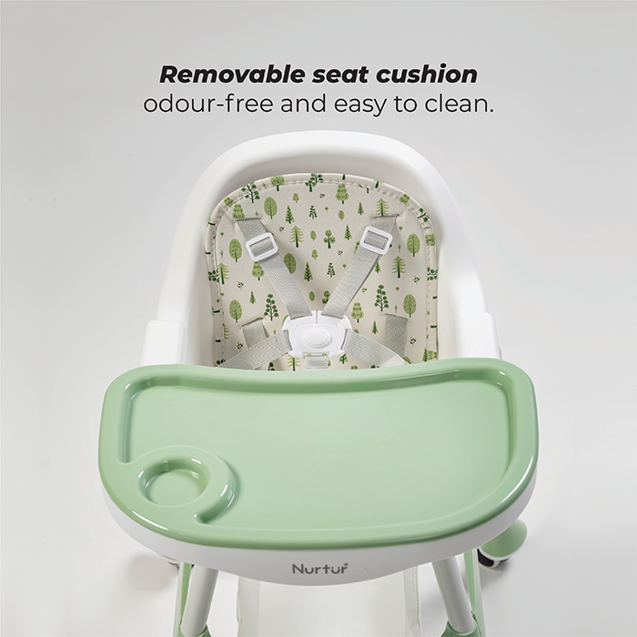 Nurtur 2-In-1 Baby Highchairs with Adjustable Legs Convertible Compact, Light Weight Feeding High Chair with Storage Basket, Lockable Wheels Padded Cushioning, Detachable Tray, Footrest
