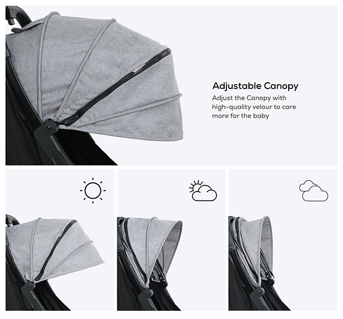 Whether you're catching a flight, strolling through busy city streets, or taking a relaxing walk in the park, the Aspen Plus stroller's fluid folding mechanism lets you pack and go in seconds. Weighing only 5.9 kg, this stroller is easy to lift, carry, and maneuver, making it the ideal choice for both everyday use and travel adventures.