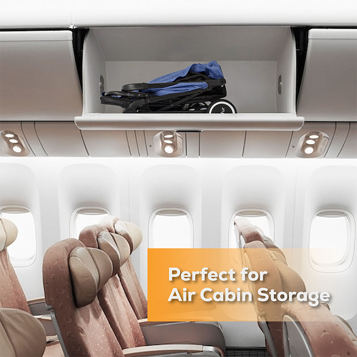 Thanks to its one-hand, folding mechanism, this cabin-approved stroller collapses into an ultra-compact shape that fits easily into airplane overhead bins or car trunks.