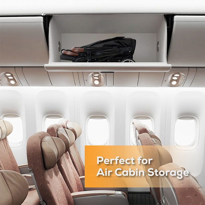Thanks to its one-hand, folding mechanism, this cabin-approved stroller collapses into an ultra-compact shape that fits easily into airplane overhead bins or car trunks.