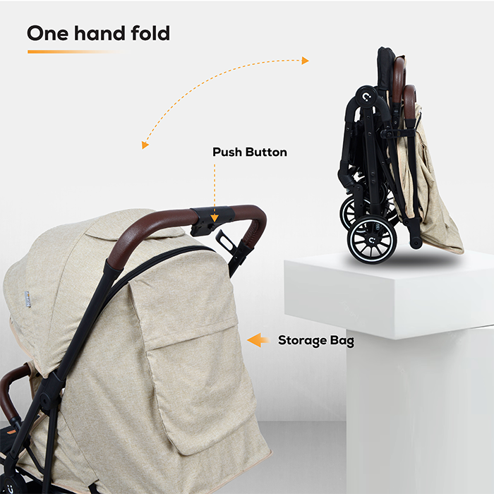 Thanks to its one-hand, folding mechanism, this cabin-approved stroller collapses into an ultra-compact shape that fits easily into airplane overhead bins or car trunks.