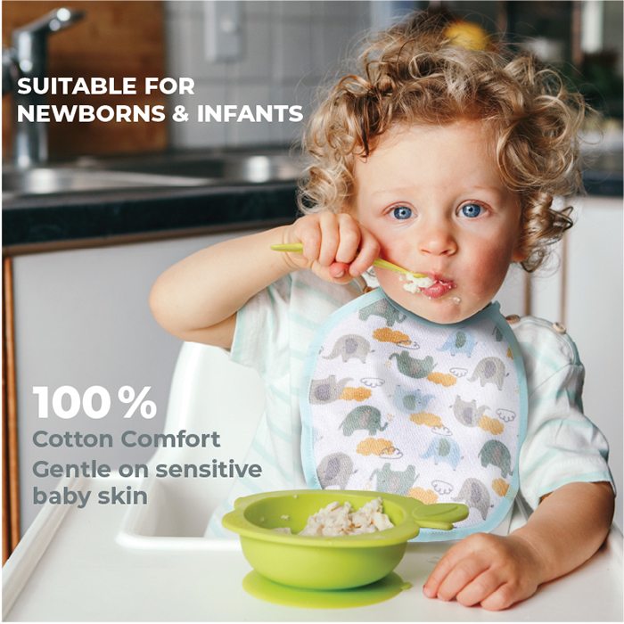 Stock up on mealtime essentials with the Nurtur 5-Pack Polyester Baby Bibs (M5) in Basic Bright Jolly Tots designs. These lightweight and comfortable bibs are crafted from durable polyester, offering reliable protection against spills, drool, and food messes. Designed for everyday convenience, they are incredibly easy to wipe clean, making post-meal cleanup a breeze. This multi-pack ensures you always have a clean, bright bib ready for your active little one, adding a splash of color to their day.