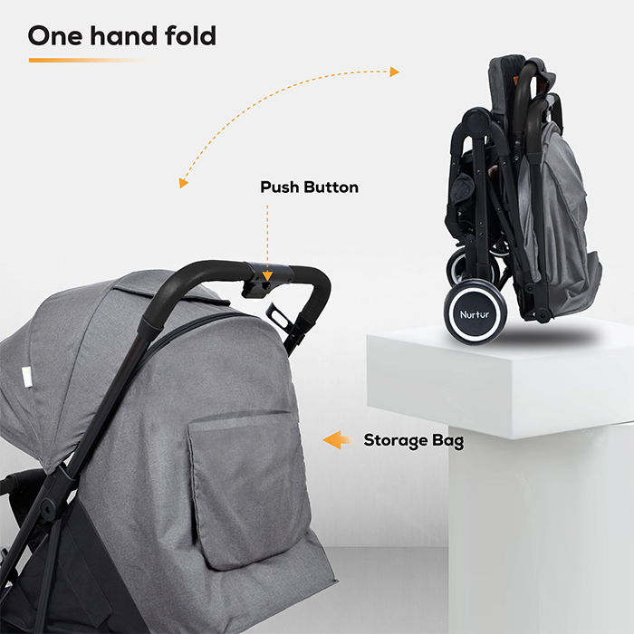 Whether you're heading to the mall, catching a flight, or going for a walk in the park, the Nurtur Plus Stroller + Baby Carrier System offers the ultimate convenience. The lightweight stroller frame (just 6.4 kg!) folds effortlessly with one hand thanks to the Click & Fold mechanism, while the auto-lock system ensures it stays securely closed during transport or storage.