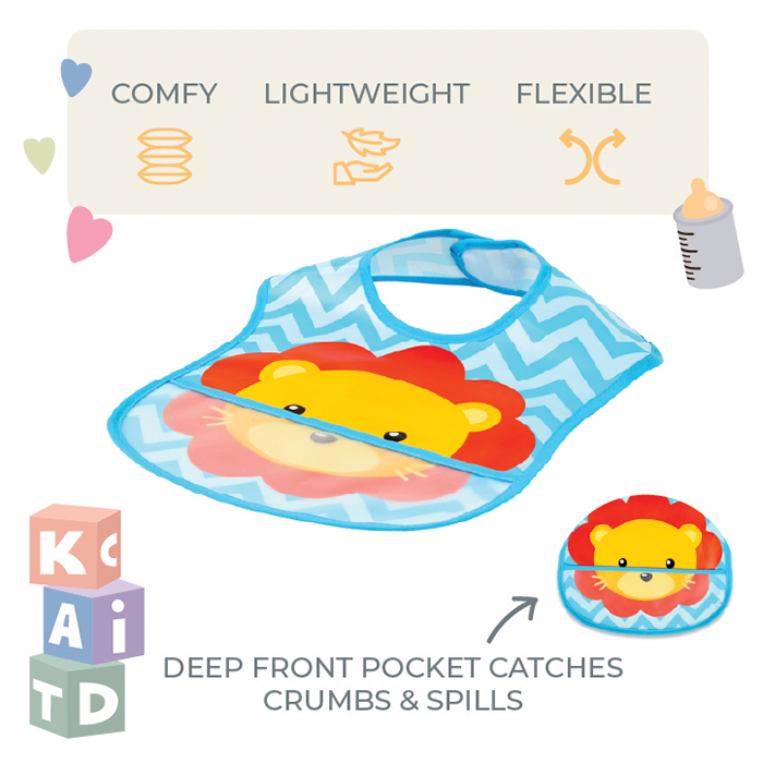 Nurtur PP Bib with Pocket - Character Print - Lion/Boy - Pack of 1